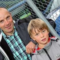 Heinz lässt sich mit seinem 9-jährigen Sohn Thomas
