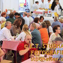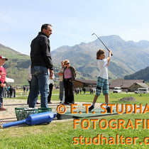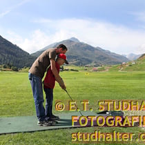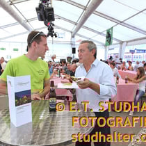 Samstag 3. August 2011: Fotodok Tag der Offenen Baustelle der Andermatt Swiss Alps AG mit Samih Sawiris und vielen Besuchern. Golfplatz, Podium und Hotel Chedi Andermatt mit Gestzelt auf dem Bahnhofplatz Andermatt.