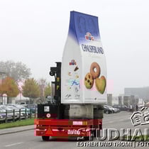Eröffnung neues ChnusperLand, neuer Fabrikladen der HUG AG in Malters. Fotodokumentation Medienkonferenz zur Eröffnung, Umzug HUG-Werbebeutel und Ansichten neuer Verkaufsladen, neues Verwaltungsgebäude Hug AG am neuen Standort Neumühlestrasse Malters.