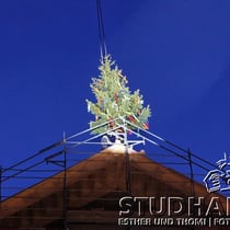 Zeremonien wie dem Zimmermannsspruch und dem Hochziehen einer Tanne auf den Dachstock.