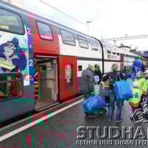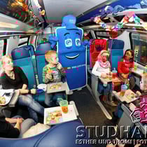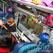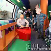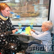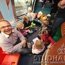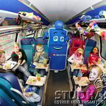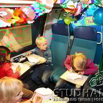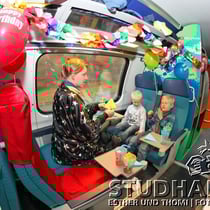 Fotodokumenation für Tit-Pit GmbH (Eventorganisation.ch): Test Kindergeburtstagsfeier im Familienwagen Ticki Park der SBB. Fahrt Zürich HB - St. Gallen - Zürich HB. Test-Kindergeburtstagsparty. Auftrag: Mirjam Mimi Zimmer und Stefan Schmid, Tit-Pit und Eventorganisation.ch.