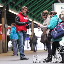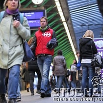 P-ART Flyering Promotion Shopping im Bahnhof Winterthur von Eventorganisation.ch: Ein Sampling hat eine besondere Energie: Es ist ein Geschenk. So erfreuen Sie Ihre Zielgruppe beim ersten Kontakt mit Ihrem neuen Produkt und animieren zum späteren Kauf. Eventorganisation.ch übernimmt die gesamte Organisation, verpflichtet erfahrene Promoter, kleiden sie dem Produkt entsprechend ein und weisen sie genau an, wie sie die Zielgruppe anzusprechen haben. So bringt Eventorganisation.ch die Produkte direkt zu seinen Konsumenten – freundlich und entgegenkommend. E.T. Studhalter hat die Flyering-Aktion am frühen Morgen dokumentiert - freundlich und kompetent...