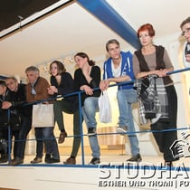 1. Hauptprobe 'D'Hochzytsfahrt i de Zwiebacki'. Fotodokumentation altes Produktionsgebäude (Zwieback-Produktion) Hug AG an altem Standort Hellbuehlstrasse Malters. Das Theaterstück - als «Hochzytsfahrt…» von Philipp Engelmann vor 25 Jahren geschrieben und im Schauspielhause Zürich uraufgeführt - wurde nun vom Autor in Zusammenarbeit mit Walter Sigi Arnold (Regie) eigens für diese Produktion neu überarbeitet. Der Spielort «…i de Zwiebacki» gibt dazu einen wunderbaren Rahmen und begleitet diese 21 Aufführungen durch Raum und Geschichte.