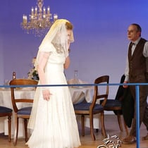 alte Geschichten werden «aufgewärmt», lange verdrängte Konflikte spitzen sich zu, eine frühere Geliebte des Bräutigams taucht auf, alles gerät aus den Fugen. Das heraufziehende Gewitter, Lichtveränderungen und apokalyptische Klänge untermalen den langsamen Zerfall der Festgesellschaft.