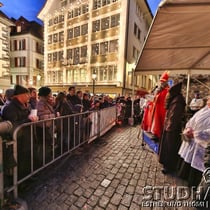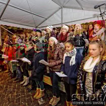 Fotodokkumentation Adventssingen mit dem Migros-Kulturprozent auf dem Luzerner Kornmarkt. Samichlauseinzug und weihnächtliche Klänge der Blaskapelle Albatros, offenes Singen mit dem Jugendchor Nha Fala Horw und dem Gemischten Chor Obernau. Fotos für Flyers, Broschüren, Inserate und Web.
