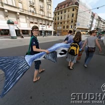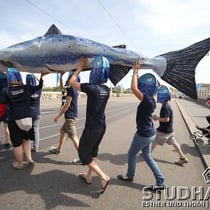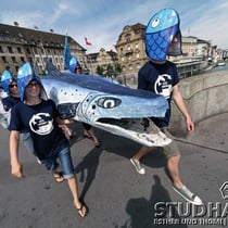 Eine Strassenaktion sorgt heute auf der Mittleren Rheinbrücke in Basel für Aufsehen. Das Ziel der WWF-Kampagne: Auch die letzten Kraftwerke am Oberrhein sollen so saniert werden, dass sie für Wanderfische passierbar sind. Einzelne Lachse haben es in den vergangenen Jahren wieder bis nach Basel geschafft. Doch die internationale Kampagne Lachs Comeback will mehr: Gemeinsam mit Partnerorganisationen will der der WWF den Wanderfisch nach rund hundert Jahren wieder in unser Land zurueckbringen. Mit der Aktion in Basel heissen die Umweltschützer den Lachs symbolisch in der Schweiz willkommen.