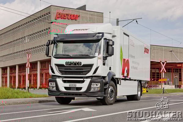 Umweltfreundliche Warenlieferung: Seit dem 1. März 2015 ist Pistor mit einem weltweit einzigartigen LKW unterwegs. Als erste Lebensmittel-Grosshändlerin besitzt Pistor ein vollständig elektrisch
