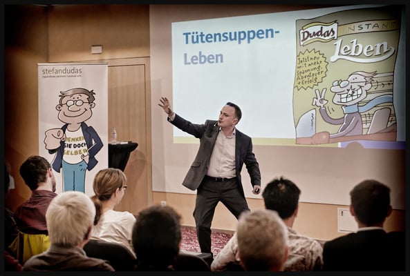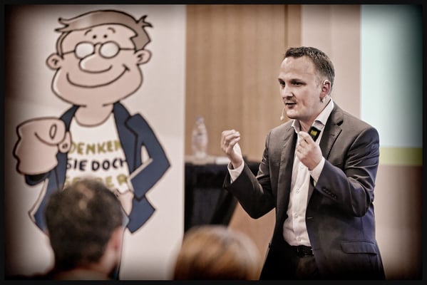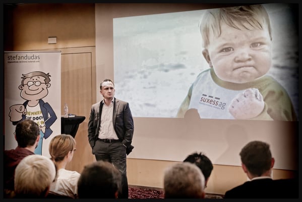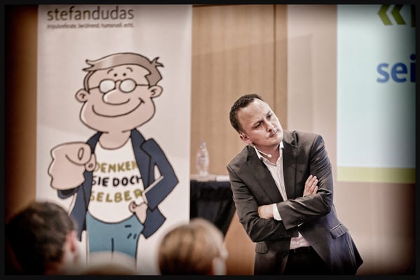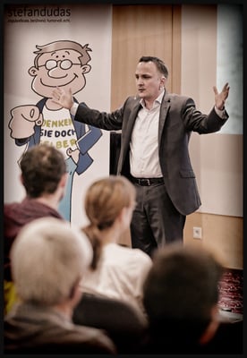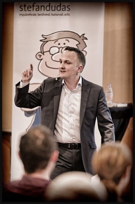 Impulsreferat von Speaker und Coach Stefan Dudas 'Denken Sie doch selber' im Hotel Radisson Blue in Luzern. Stefan Dudas ist Speaker, Trainer, Coach und Autor und bringt Menschen durch seine humorvolle, direkte und treffende Art einen massgeblichen Schritt nach vorne! Er gibt seit über 8 Jahren Seminare und hält Vorträge in Deutschland, Österreich und in der Schweiz. Er ist Autor des Hörbuches «Holen Sie sich die Kontrolle über Ihr Leben zurück» – Mentale Powertechniken für Ihren Erfolg. Co-Autor des im ERDAS-Verlag erschienenen DVD-Sets «Trainer-Power-Marketing». Im September 2014 erschien sein Buch «Denken Sie doch selber!».
