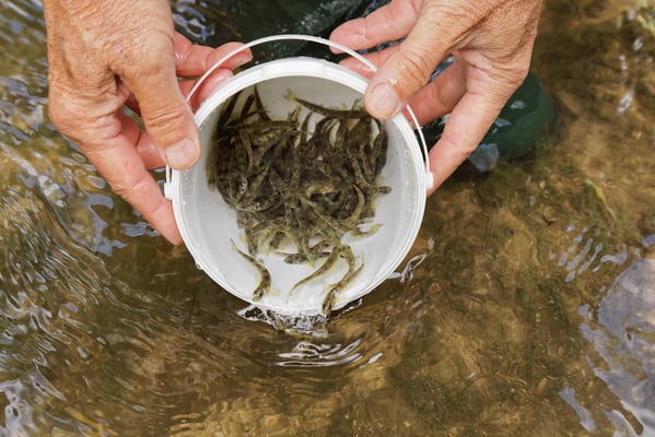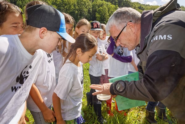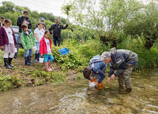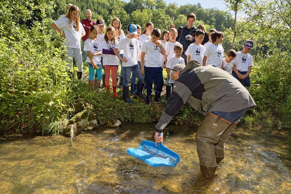 Schülerinnen und Schüler haben am Magdenerbach (AG) 3900 junge Lachse ausgesetzt. Begleitet wurden sie von Fachleuten des Kantons Aargau, von Fischern des Fischereivereins Magden sowie dem WWF Schweiz.