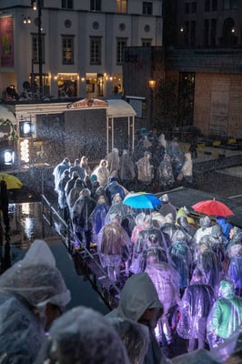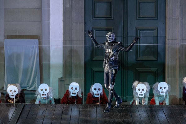 Fotodok ewl-Kundenanlass: "Ein Luzerner Jedermann", Freilichtspektakel auf dem Jesuitenplatz nach Hugo von Hofmannsthal, eine Gemeinschaftsproduktion des Luzerner Theaters und der Freilichtspiele Luzern. Start outdoor auf der OpenAir-Bühne vor der Jesuitenkirche und anschliessend im starken Regen Umzug ins Stadttheater. Vorab Apero, Einführung und Nachtessen im Maskenliebhabersaal (Süesswinkel)