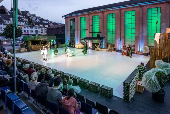 2019. Mit dem Bild der Eisbahn überträgt Thomas Hürlimann die Komödie von Shakespeare vom heutigen Sommer in den Shakespeare-Winter. «Es isch dunkler worde. D Wälle erstarrid zu Ys. Üsi Träum
