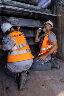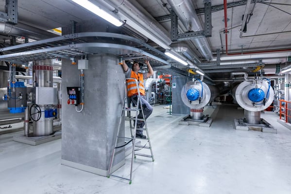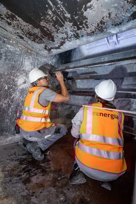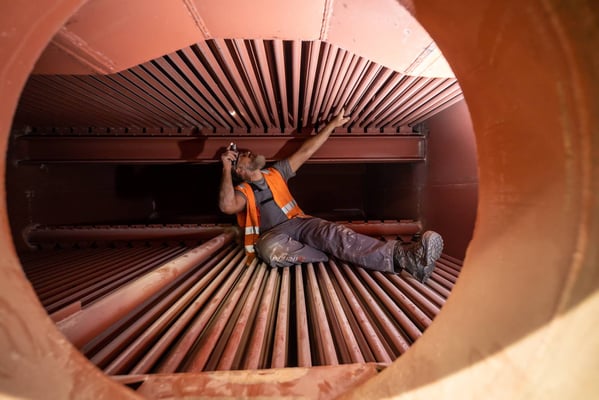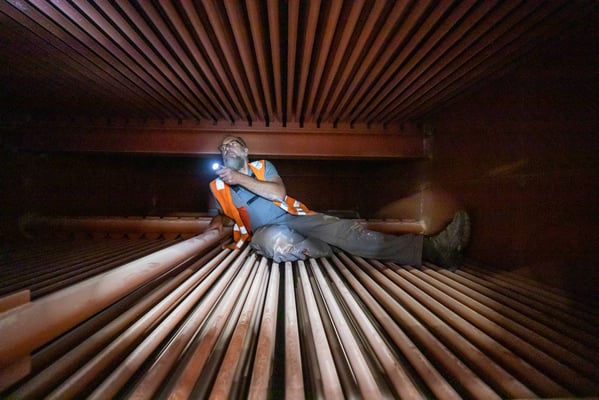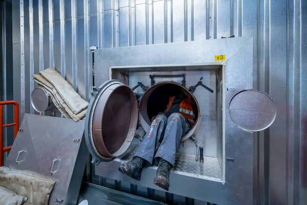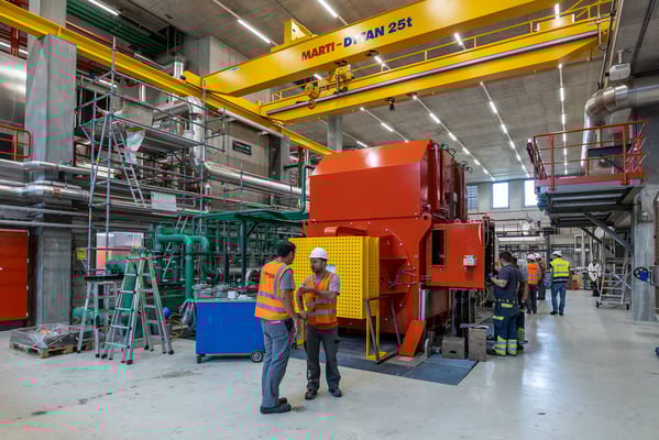 Die beiden riesigen Brennöfen der Kehrichtverbrennungsanlage Renergia in Perlen laufen ganzjährig im Dauerbetrieb. Nur einmal jährlich erlöscht das Dauerfeuer und Spezialisten kriechen in jeden Winkel des giantischen Bauerks. Abertausende Ventile, Sensoren, Pumpen, Klappen, Bauteile usw. werden penibel kontrolliert und notfalls ausgewechselt. Hier begebe ich mich mit Markus Benz, Leiter mechanische Instandhaltung auf eine finale Inspektion durch die riesige Anlage. Nach der präzisen Kontrolle kann der Ofen wieder eingefeuert werden. Fotodok für Renergia.