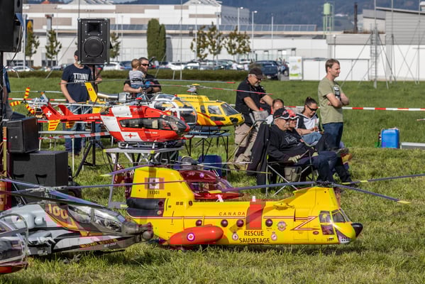 Reto Marbach, Modellflieger, -experte und -händler (FLUGBOX) mit Herz, lud am Wochenende wieder zu einem Internationalen Modellhelimeeting nach Willisau. Bei Tageslicht präsentierten Dutzende Heliprofis aus ganz Europa ihre ausgefallenen, detailreichen Grossmodelle und Abends startete eine unvergessliche Show mit beleucheten Helis mit jeder Menge Spezialeffekten und Feuerwerk (Siehe Video).