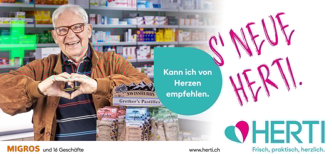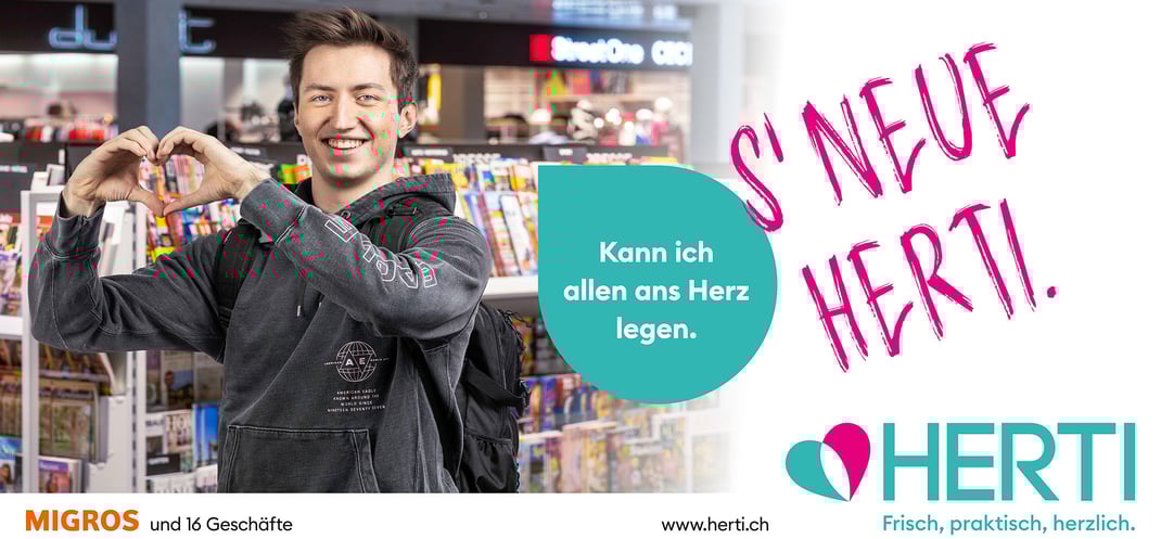 Nach einer fulminanten Werbekampagne zur Eröffnung des neuen Herti-Zentrums (Zug) der Migros Luzern im Oktober 2020 erinnern nun im Januar 2021 neue Plakate an das erfolgreiche Einkaufszentrum mit den sympathischen Kundinnen und Kunden. Analog zum Herbst 2020 stehen auch 2021 die KundInnen im Zentrum: Sie schenken Ihrem Quartier-Einkaufszentrum ihr Herz und dokumentieren mit viel Engagement ihre Freude über das neue Einkaufserlebnis.