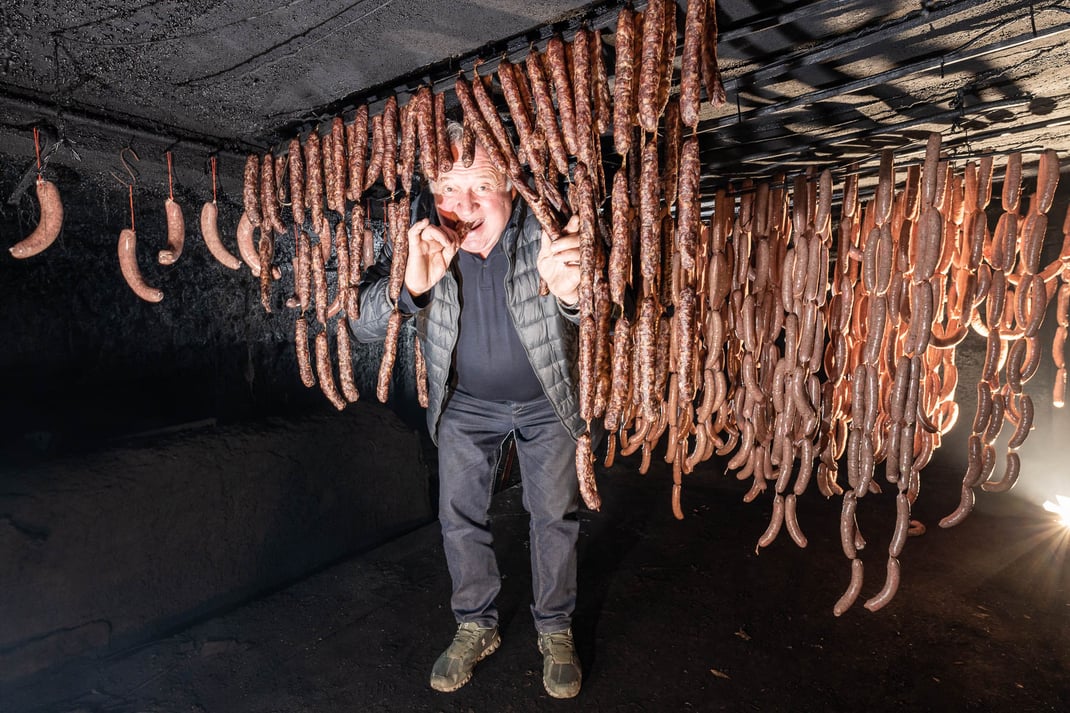 Pius Chroni Kneubühler, begnadeter Koch aus Leidenschaft, ehemals legendärer Gastgeber im Restaurant Krone und Festwirt am Jassfestival Willisau. Einzigartig noch heute: seine selbstgeräucherter Würste...