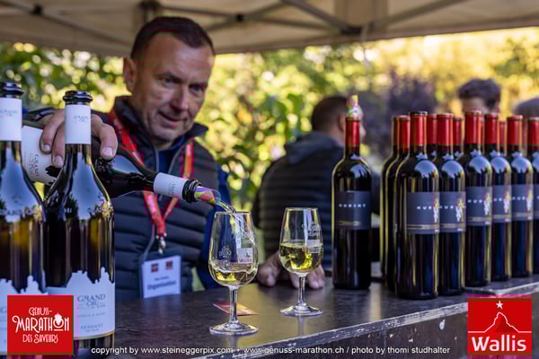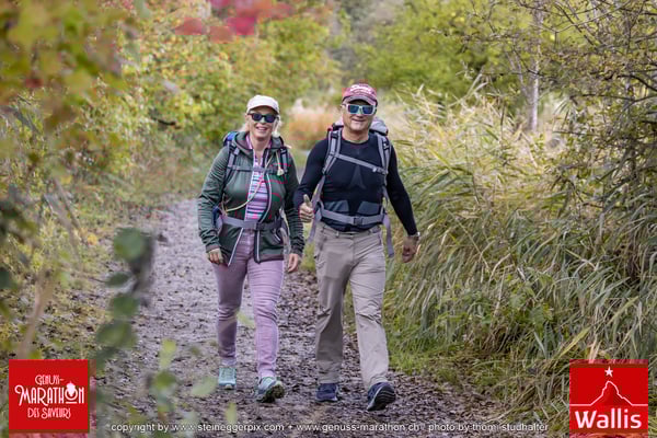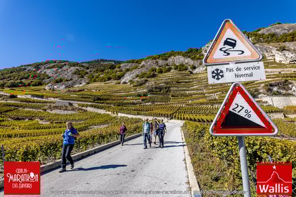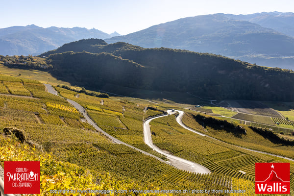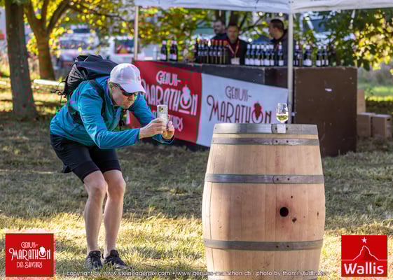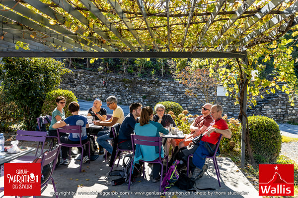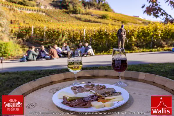 Der Genuss-Marathon ist eine Wanderung durch das Walliser Weingebiet, auf welcher sportliche Geniesser und geniessende Sportler die Besonderheiten, Sehenswürdigkeiten und Köstlichkeiten der Region erkunden. An 5 Kulnarik-Posten stehen jeweils 2 Weine und eine regionale Köstlichkeit zum Genuss bereit. Am Genuss-Marathon 2022 stehen Mal zwei Strecken zur Auswahl. Beide starten in Sion, die eine führt ostwärts nach Salgesch, die andere westwärts nach Chamoson.