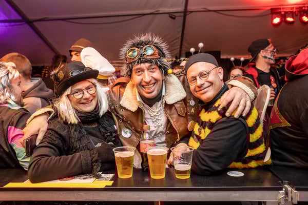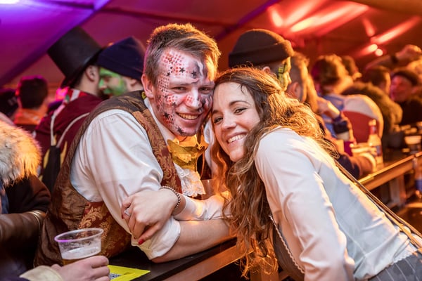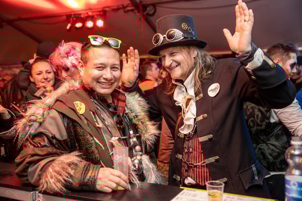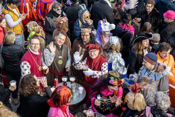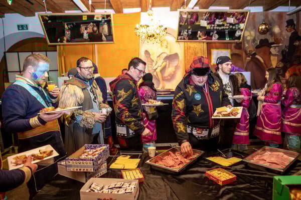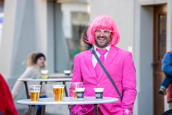 Dito am Abend: Rathausball und Partytrubel im Festzelt - die bisher längste Bar der Willisauer Fasnacht hat sich bewährt: Hunderte Fasnächtler:innen besetzten das Festzelt bis zum bitteren, weil frühen Ende um Mitternacht, während der Rathausball eher gemächlich startete. Ein buchstäblich toller Abend...