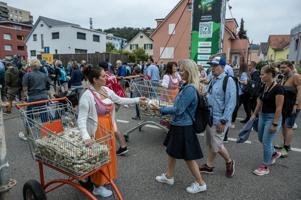 Die Migros Basel ist beim Schwingfest für die Warenlieferung der Festzelte und grösseren Verkaufsstände auf dem Festgelände zuständig. Selber betreibt sie Verkaufsstände an zwei Standorten und ist für das VIP-Catering der Ehrengäste verantwortlich. Das bedeutet, dass die Migros Basel am Festwochenende neben den 56 regulären Migros-Verkaufsstandorten zusätzlich das Festgelände mit Sandwiches, Kuchen, Brot-, Fleisch- und Wurstwaren beliefern wird. Das sind unter anderem rund 70’000 Würste, 20’000 Gipfeli und 25’000 Sandwiches. Diese Aufgaben erfordern eine akribische Planung und grosse Bereitschaft vonseiten der Migros-Mitarbeitenden, die mit ihrem Einsatz jederzeit frische Produkte für die Festbesucherinnen und -besucher gewährleisten.