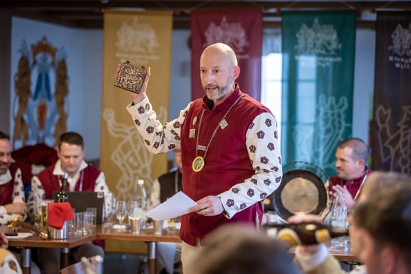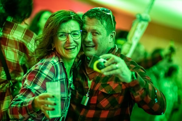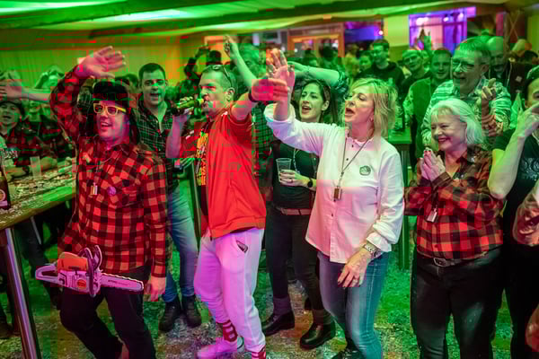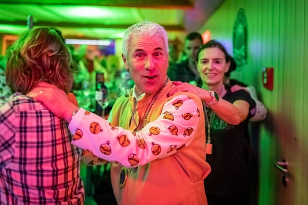 Dem mächtigen Monsterkonzert aller Guuggen unter Tambour Adriana Hügi schliesst sich der Hauptpunkt des Abends an: Die feierliche Inthronisation des Karnöffel-Zunftmeisters Rainer Thüer durch Zunftpräsident Franz Gehrig, übergehend in die Ansprache des Fasnachtsregenten 2023/2024. Er fühle sich geehrt und freue sich rüüdig auf die zwei kommenden Jahre, ruft Thüer einleitend aus. Das Fasnachtsvirus habe er von seinen Eltern geerbt. Sein Werdegang in der Zunft (Enzilochmann, Zunftgeselle, Zunftrat, Zeremonienmeister, Weibel) wurde mit der Wahl zum Meister am 29. Oktober des vergangenen Jahres gekrönt. In der Vorfasnacht habe er «viele wunderbare Termine» wahrnehmen und bei allen Guuggenmusigen bei den Proben reinschauen können. Das sei «huere geil und ganz verreckt» gewesen. Der Zunftmeister dankt unter Applaus des Publikums für «die grossartige Arbeit der Guuggenmusigen».