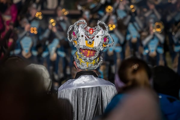 Auf die kommenden Fasnachtsaktivitäten zu sprechen kommend, wird der Redner laut: Die Zeiten der käferbedingten Einschränkungen seien vorbei: «Wir können wieder aus dem Vollen schöpfen, die Alltagssorgen beiseiteschieben, die Probleme ins ‹Guugger-Loch› verbannen, zusammen ausgelassen feiern und positive Erinnerungen schaffen.» Die Fasnachtszeit sei wichtiges Kulturgut und bringe die Menschen zusammen. «Das ist einfach nur wunderbar», hält Thüer begeistert fest und leitet über zum heurigen Fasnachtsmotto: «Jetz löhnd mir's weder so rechtig lo tschädere». In diesem Sinne eröffnet er die Fasnacht 2023 und wünscht allen eine «rüüdig verreckte Fasnachtsziit».