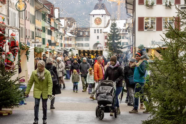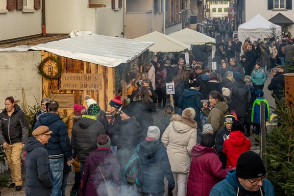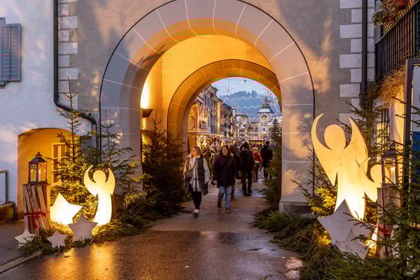 dem Dauerregen gewichen. Das hinderte aber die Besucher:innen des Christkindlimärt Willisau an einem besinnlichen Spaziergang durch die weihnachtlich geschmückte die Sagen-, Engel-, Märli- und