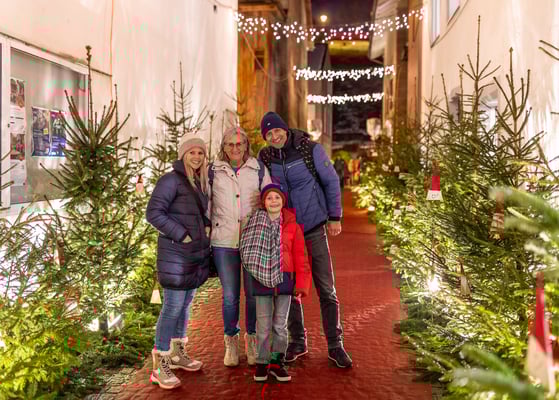die Hauptgasse. Wer schon genügend Engel, Wintermützen, Adventskränze oder andere handwerkliche Kostbarkeiten gekauft hatte, verzweifelte fast an der kulinarischen Vielfalt: lieber die köstliche
