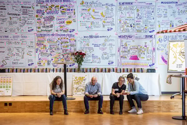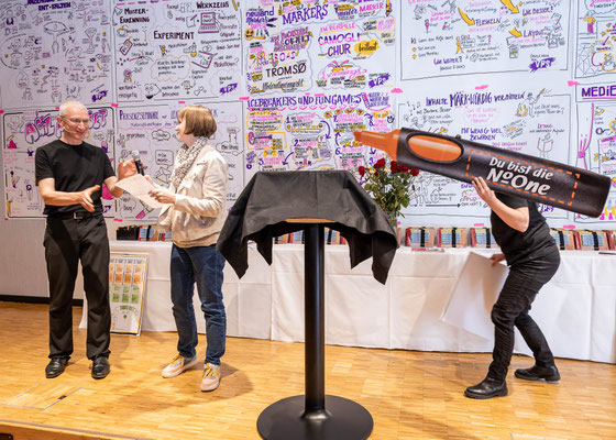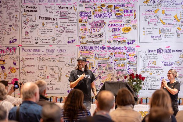 Genau diese Frage hat sich Neuland AG gestellt – und im Jahr 2004 den ModerationsMarkt ins Leben gerufen. Seither ist der ModerationsMarkt eine einzigartige Quelle für Ideen und Inspiration. Jährlich präsentieren nationale und internationale Persönlichkeiten frische Methoden, Tools und Impulse für Ausbildung, Coaching, Motivation und Personalentwicklung. Diese lassen sich direkt erleben in 16 praxisnahen Workshops à 80 Minuten und am inspirierenden Marktplatz mit vielfältigen Ständen. Garantiert frisch. Und garantiert unverbraucht. Seit Jahren begleite ich den Moderationsmarkt fotografisch und erfreue mich selbst an immer neuen Moderationsideen.