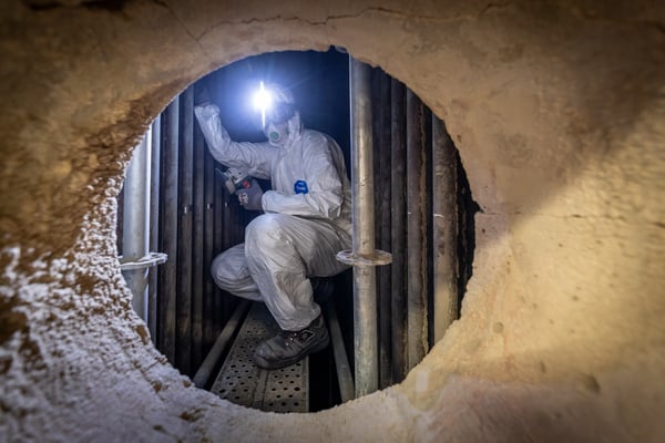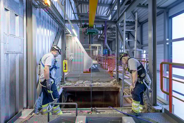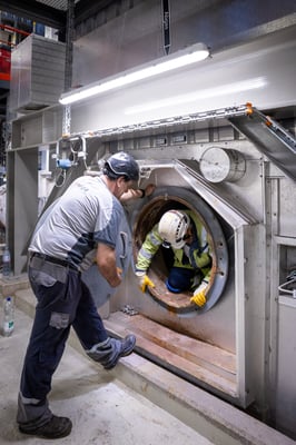 PERLEN/LU, 26. JUNI 2025 - JAHRESREVISION KEHRRICHTVERBRENNUNGSANLAGE RENERGIA PERLEN: Fotodokumentation der Jahresrevision von Verbrennungsofen 2 (für Geschäftsbericht & Web). Alle zwei Jahre wird jeweils eine der beiden Ofensysteme kontrolliert, gereinigt und viele Teile komplett ersetzt. Über 100 Spezialisten zwängen sich in jeden Teil der Anlage bestehend aus Abfallbunker, Verbrennungsofen, Dampferzeugung, Reaktoren, Katalysatoren, Filter, Dampfleitungen, Kamine und Stromgeneratoren.