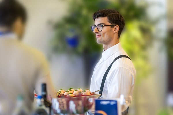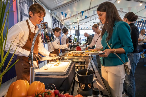 Die Apéro-Häppchens stehen bereit, die Musik spielt: Migros Catering Services Zürich am Leichtathletik-Meeting Weltklasse Zürich