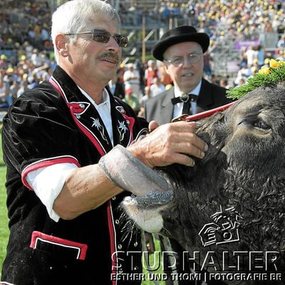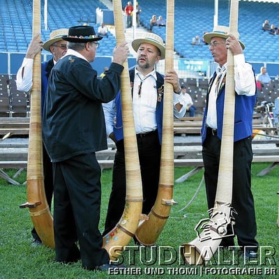 Schwingerkönig Joel Wicki und Musiker KUNZ feiern den Gewinner der "Ehren-Goldenen-Sonne" Michel Reber