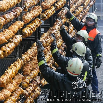 Eine veritable Küchenbrigade ermöglicht am Zuger Kantonalen Schwingfest in Neuheim eine effiziente Verpflegung zwischen zwei Gängen.